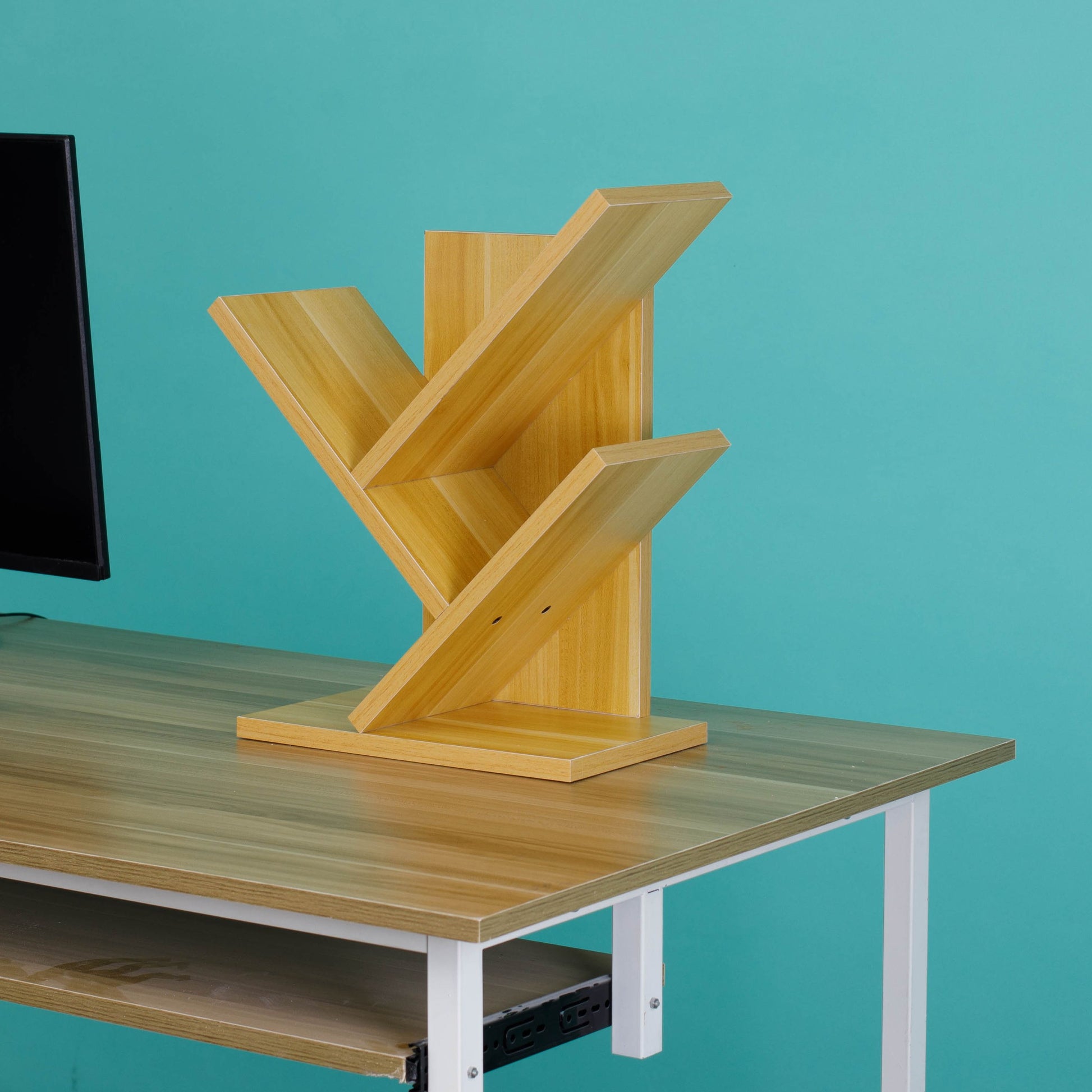 Apportez une touche d'élégance et d'organisation à votre espace avec cette bibliothèque en bois naturel, au design moderne et gain d'espace, idéale pour salon, bureau ou chambre.